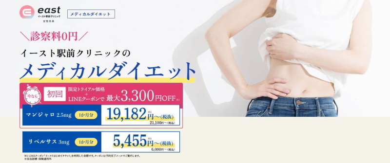 診察料無料、来院不要のオンライン診療でGLP-1メディカルダイエットなら、イースト駅前クリニックがおすすめです。