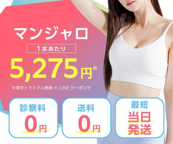 | マンジャロの料金 | 2.5mg:21,000円/月~ ※LINE友達限定初回価格 5mg:47,770円/月~ 7.5mg:66,200円/月~ |